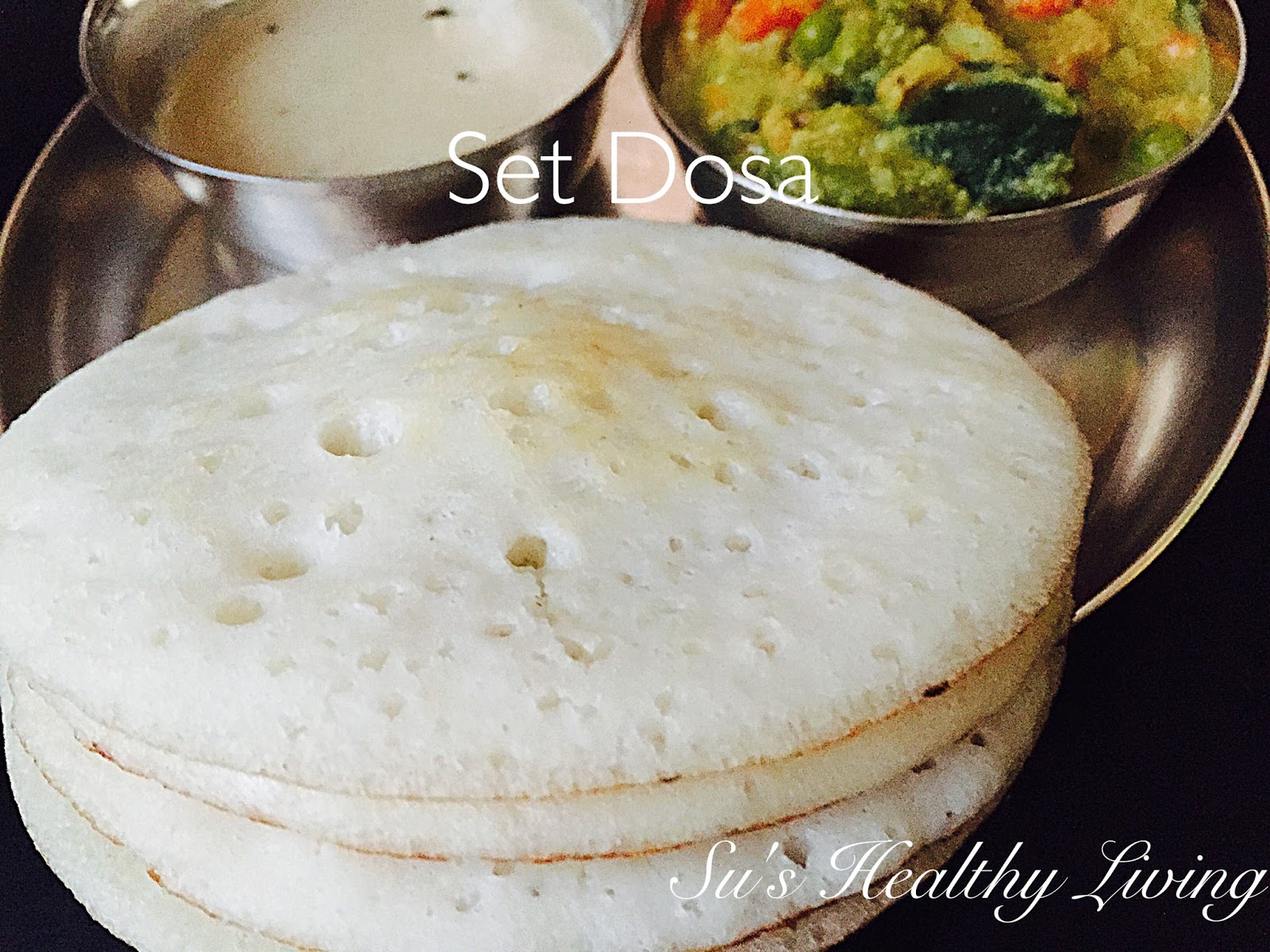 Set Dosa ( Vegan pancakes, served with mixed vegetable stew and chutney)