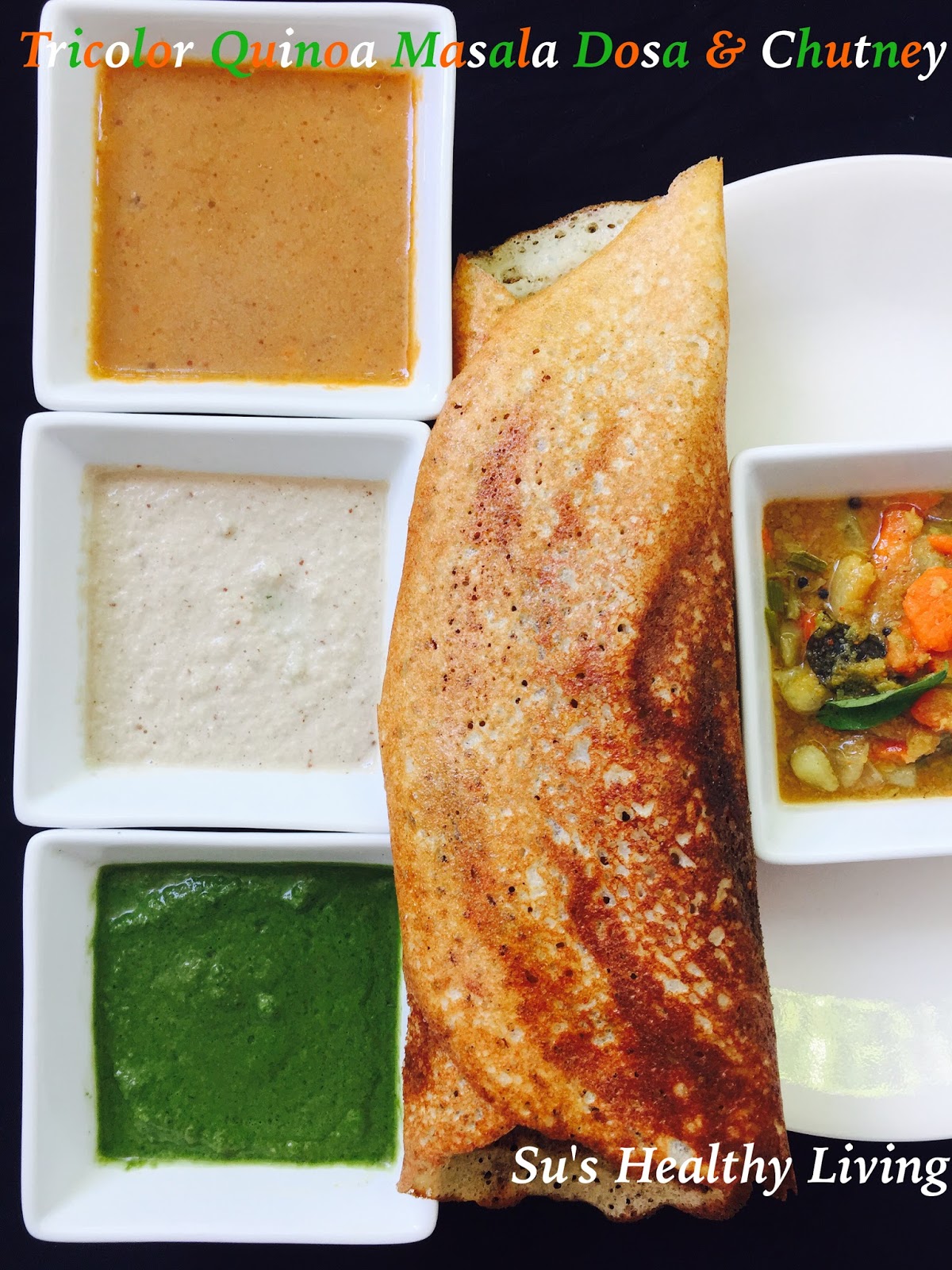 Quinoa Masala Dosa ( quinoa crepe with stuffing and chutney)